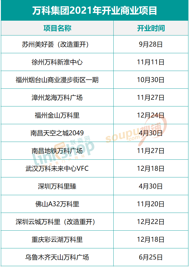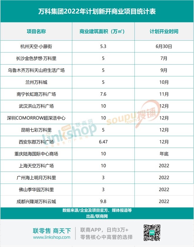 2021年萬科在全國新開了13個項目,既有區(qū)域型的萬科廣場,也有社區(qū)型的萬科里。2022年,據(jù)聯(lián)商網(wǎng)零售研究中心,萬科也將新開14個購物中心,諸如上海天空萬科廣場、杭州天空·小藤街等項目非常值得關注。