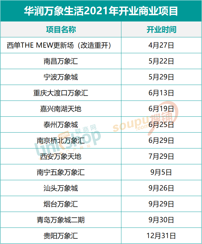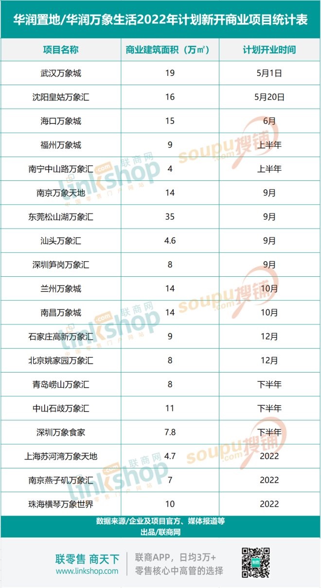 2022年華潤萬象生活繼續(xù)擴大產(chǎn)品線,全新打造的萬象食家也將亮相。根據(jù)聯(lián)商網(wǎng)零售研究中心統(tǒng)計,2022年華潤萬象生活預計新開19個商業(yè)項目,包括珠海橫琴萬象世界、武漢萬象城、上海蘇河灣萬象天地等標桿商業(yè)。