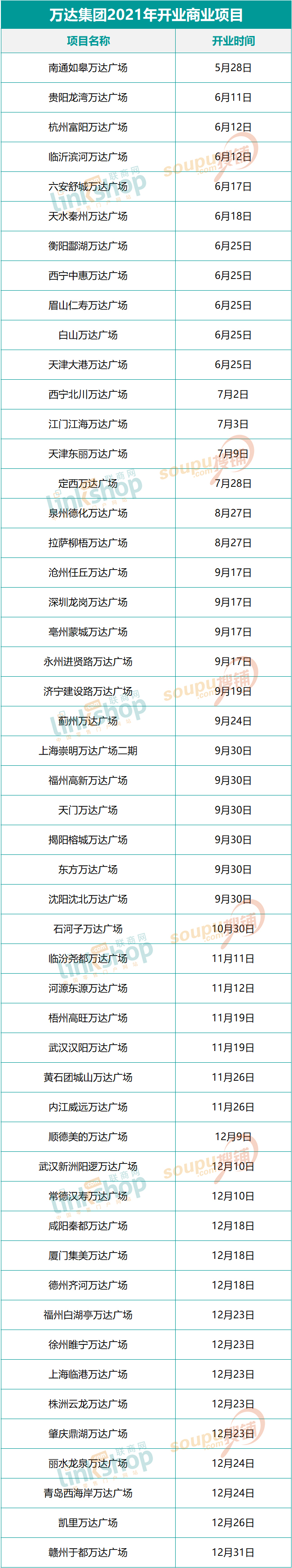 而行業(yè)及各地消費者關心的2022年萬達廣場的開業(yè)計劃,聯(lián)商網(wǎng)也在獲得一手資料后第一時間公開。從萬達官方內部及媒體報道查閱后,2022年全國計劃新開業(yè)的萬達廣場項目將達48個。