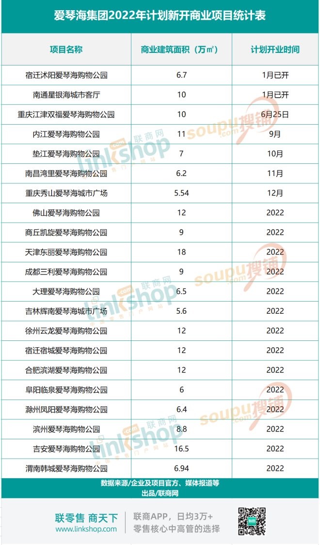知名商業(yè)地產(chǎn)企業(yè)2022年計劃新開購物中心排行榜