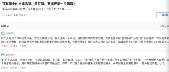 圖片來源:知乎截圖 知乎上七年前對(duì)半成品菜市場(chǎng)的討論