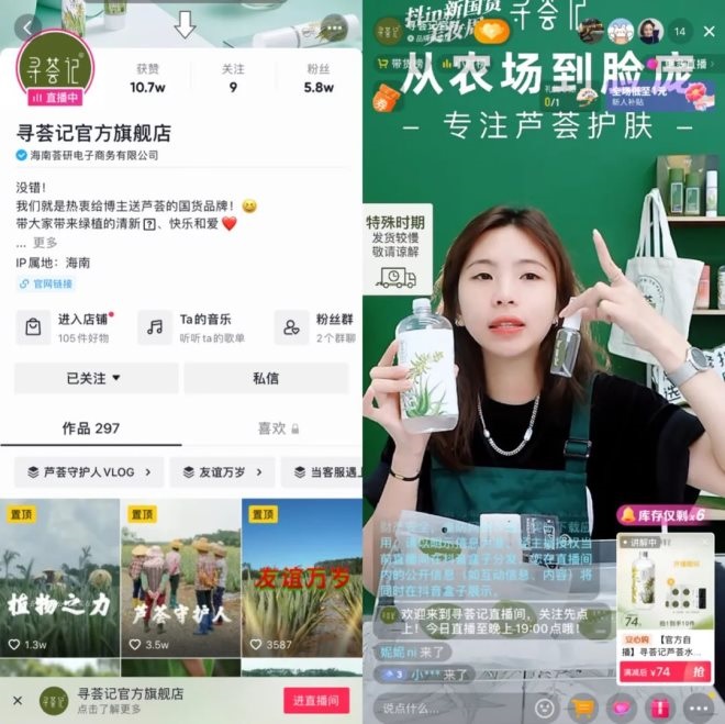《2022國貨市場發(fā)展報(bào)告:新媒介、新消費(fèi)與新文化》中提到一個(gè)國貨美妝品牌“尋薈記”,入駐抖音電商后,最先做的就是搭建品牌官方旗艦店、科研工廠、種植基地的賬號(hào)矩陣,受益于多內(nèi)容場景,成功出圈觸達(dá)消費(fèi)者。