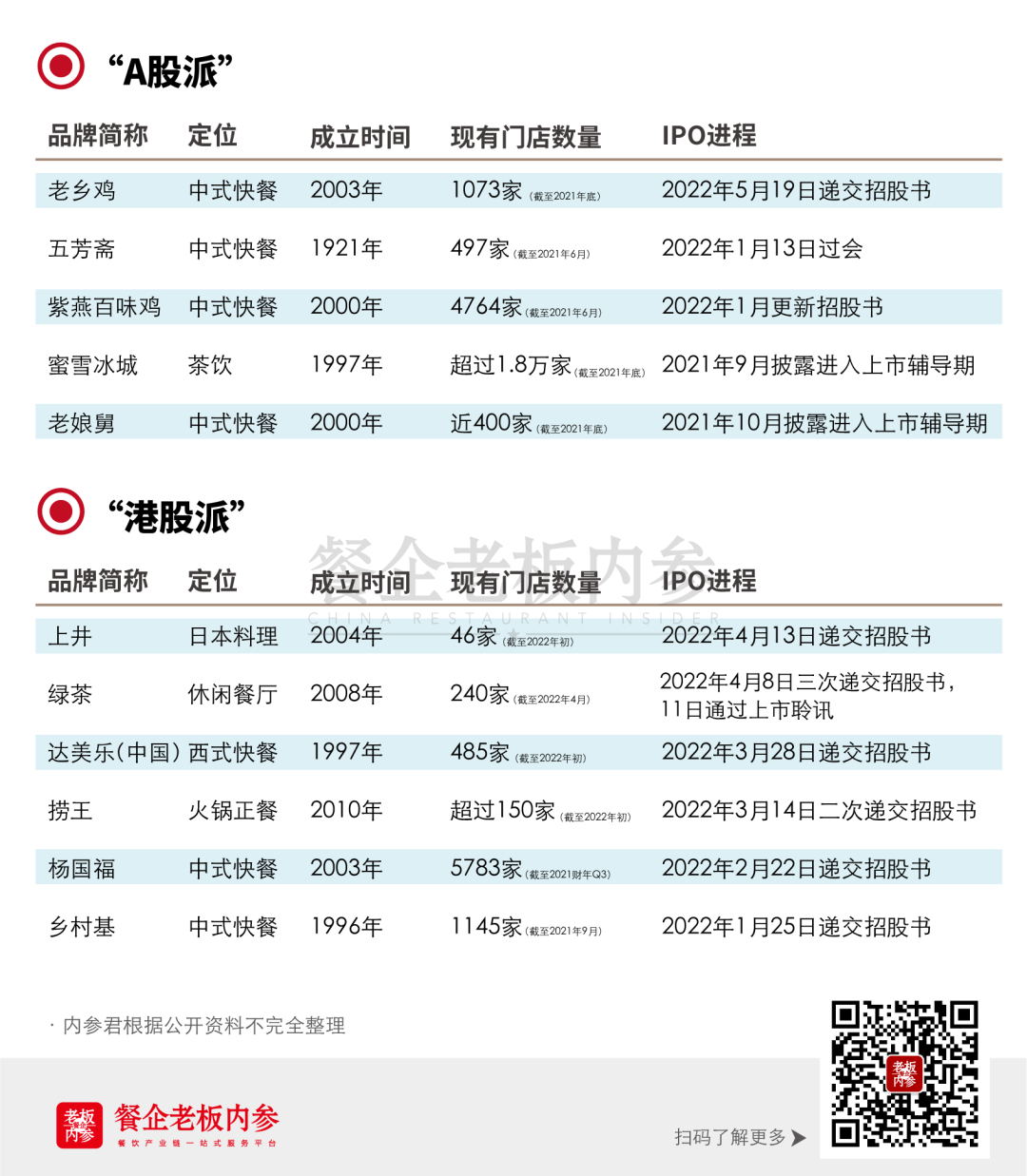內(nèi)參君整理了目前正在沖擊IPO的國(guó)內(nèi)餐飲企業(yè),主要分為“A股派”與“港股派”。