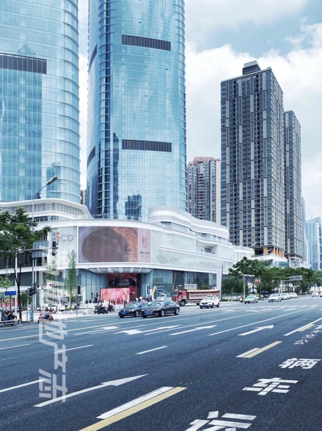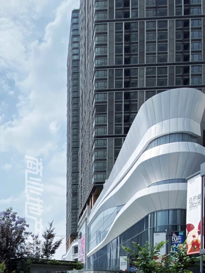 環(huán)貿(mào)ICD的建筑和硬件至肉眼可見的「港資風(fēng)」,全玻璃外墻的塔樓筆直挺拔,底部商業(yè)裙樓外部的「絲帶」元素的設(shè)計(jì)靈感則源自附近的沙河,有一說一,各個(gè)角度都很美。