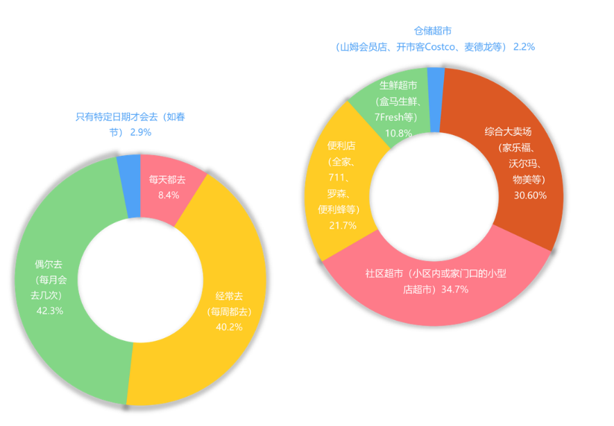 消費(fèi)者調(diào)查顯示,超市仍是消費(fèi)者購買食品的主要渠道,其中社區(qū)超市和生鮮超市是日常購物首選。