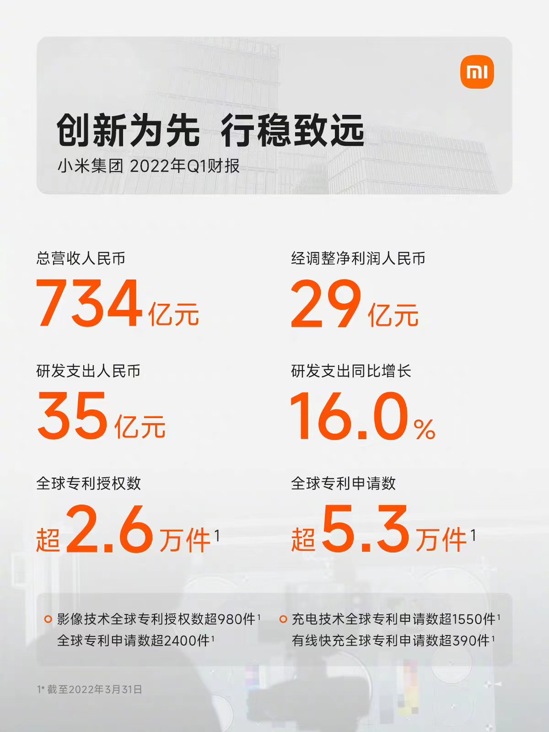 并不是。相反,小米的專(zhuān)利數(shù)量在逐年遞增,在小米公布的最新一季財(cái)報(bào)中,專(zhuān)利還被著重宣傳。