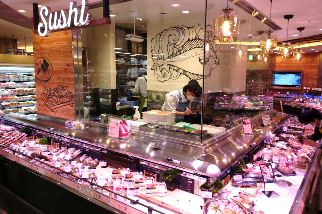 不同于普通超市的水產(chǎn)品結(jié)構(gòu),該店尤其強(qiáng)化了節(jié)假日用于慶祝、聚會(huì)的刺身拼盤,以及多道工序的炙烤壽司等。同時(shí),強(qiáng)化冷凍水產(chǎn)品類,通過LIFE在埼玉縣的物流中心引進(jìn)的零下30度酒精液體速凍機(jī),加工冷凍魚片、冷凍半成品菜等。