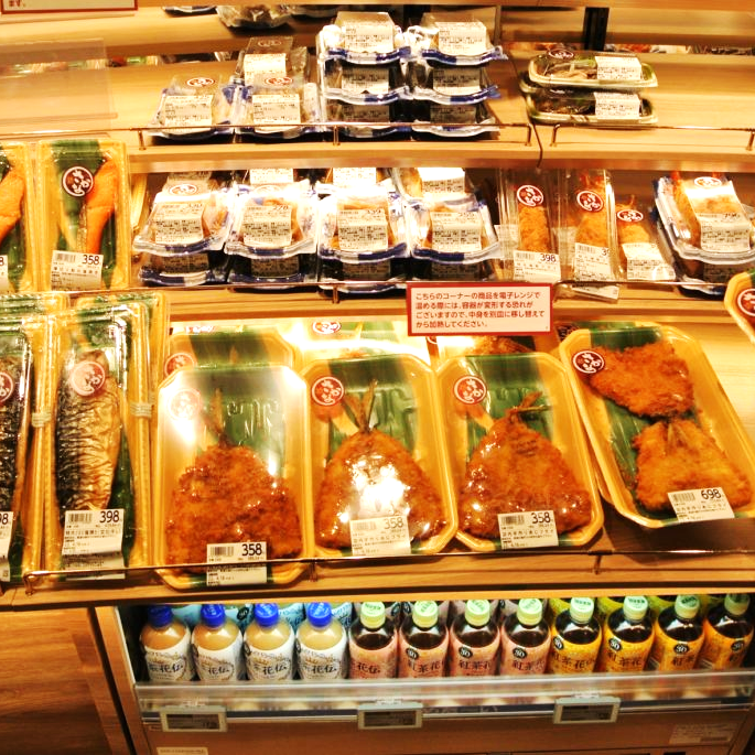 熟食的品項(xiàng)數(shù)是LIFE所有門店中最多的,便當(dāng)是普通門店的1.5倍。采用透明開放式加工間,突出現(xiàn)場(chǎng)烹制的氛圍。重點(diǎn)經(jīng)營節(jié)假日的高價(jià)格帶商品,如用日式便當(dāng)布袋包裝的國產(chǎn)牛肉飯雙層御膳(1580日元)、鰻魚飯雙層御膳(1380日元)等。