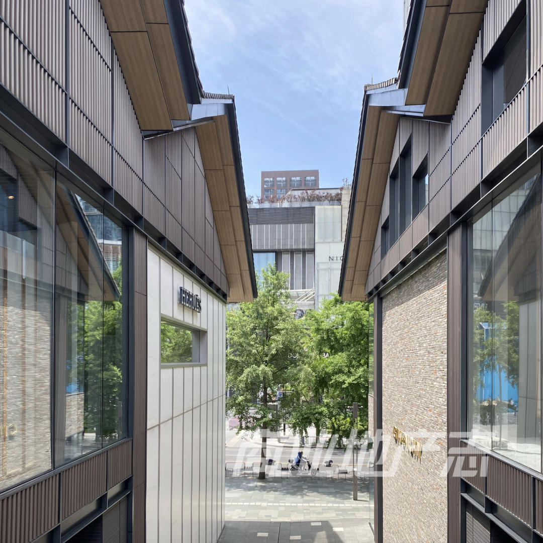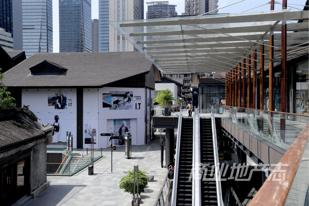 整個(gè)項(xiàng)目北部大慈寺路一側(cè)、西部北紗帽街一側(cè)、南部西糠市街一側(cè),已經(jīng)逐漸形成了品牌跨層店的統(tǒng)一風(fēng)格;