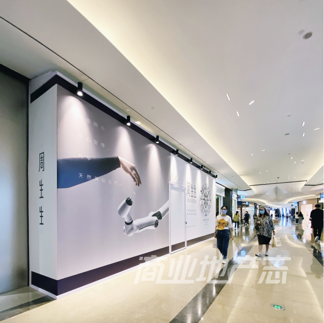其中,未見品牌的圍擋有5個(gè),品牌圍擋6個(gè),新開業(yè)店鋪1個(gè),為MC HOUSE的B1層。