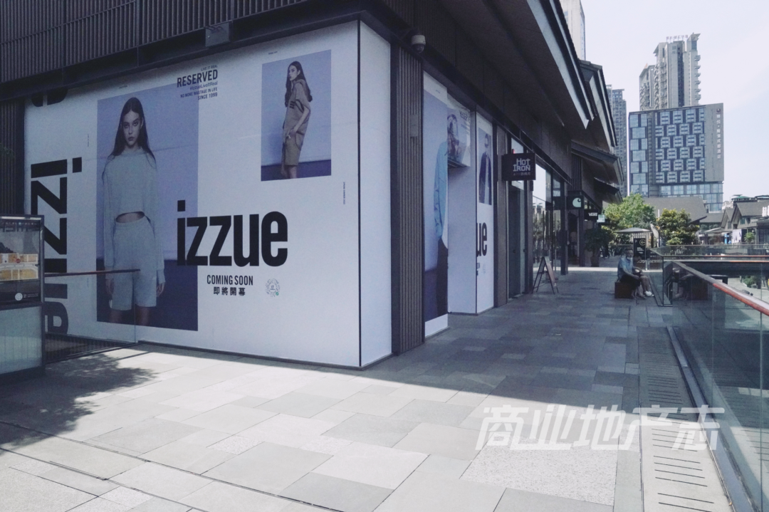 izzue:品牌在營(yíng)店位于Hollister對(duì)面、東里與慢里中交界口;而在東里1層Aape圍擋的樓上2層,原LEE的位置圍擋了izzue新店