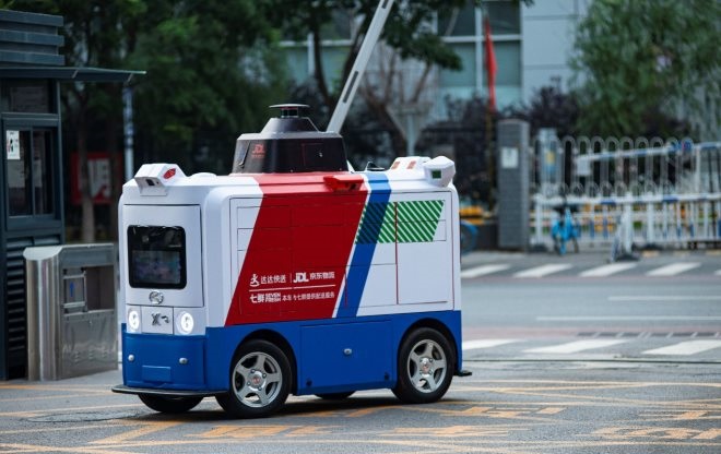 圖說:達(dá)達(dá)無人配送開放平臺(tái)攜手無人車企業(yè)打造在商超即時(shí)消費(fèi)場景下的無人配送生態(tài)。