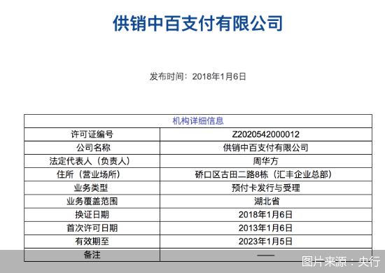 供銷中百支付也是一家老牌支付機(jī)構(gòu)。公開信息顯示,供銷中百支付成立于2000年4月,注冊(cè)資金1億元,于2013年9月獲得央行頒發(fā)的支付牌照。2016年5月,中百集團(tuán)通過股權(quán)轉(zhuǎn)讓后再同比例增資的方式,為供銷中百支付引入了武漢國(guó)創(chuàng)資本投資有限公司、湖北合作投資集團(tuán)有限公司等新股東。綜合股權(quán)穿透情況,中百集團(tuán)仍是供銷中百支付的最大股東。