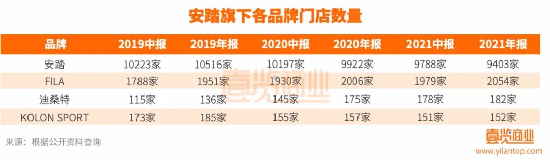 憑借超高的毛利率(2020年、2021年FILA的毛利率分別分69.30%、70.50%),F(xiàn)ILA已經(jīng)成為超過安踏主品牌的安踏集團營收和利潤的最大來源。截至2021年末,安踏門店為9403家,F(xiàn)ILA門店為2054家,迪桑特門店為182家。單看FILA單個門店創(chuàng)造了約4.6倍于安踏門店的營收和利潤。