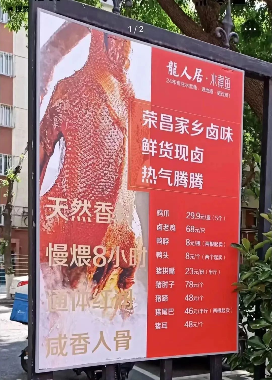 龍人居水煮魚,則把家鄉(xiāng)重慶榮昌的鹵老雞、雞爪進行售賣,值得一提的是榮昌地區(qū)也是鹵味大戶,其中鹵鵝馳名全國,是重慶面向全國的一張鹵味名片。