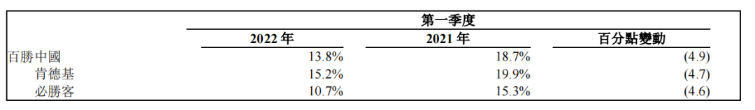 同時(shí),餐廳利潤率也呈現(xiàn)下降趨勢,由去年同期的18.7%降為13.8%。下降的主要原因是同店銷售下降,原材料、工資和電費(fèi)成本上漲以及由外賣訂單增長帶來的騎手成本增加。