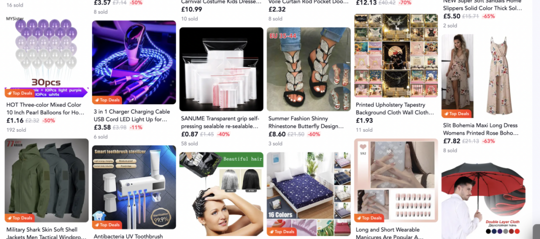 10英鎊的美容儀、4.77英鎊的“鉆戒”,以及6英鎊的黑色羽毛透視連衣裙……在Fanno上,動(dòng)輒打5折、6折的價(jià)格充滿誘惑力,略顯粗獷但直擊賣點(diǎn)的圖,總是讓你眼前浮現(xiàn)出義烏小商品市場(chǎng)的影子。