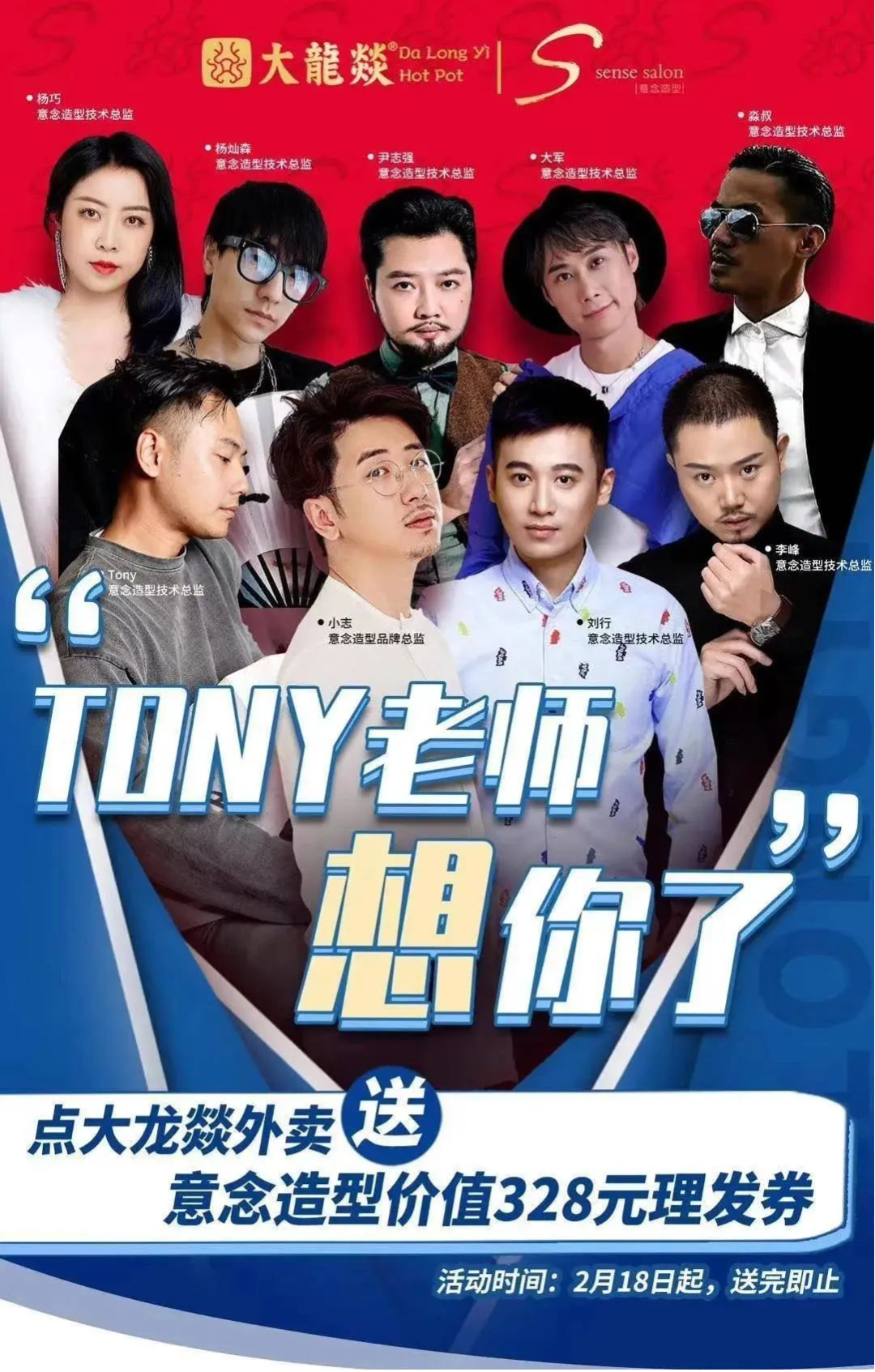 大龍燚就敏銳捕捉到用戶這一心理需求,迅速聯(lián)合成都當(dāng)?shù)匾患颐腊l(fā)機(jī)構(gòu)做了優(yōu)惠活動(dòng)“Tony老師想你了,點(diǎn)大龍燚外賣,送理發(fā)券。”