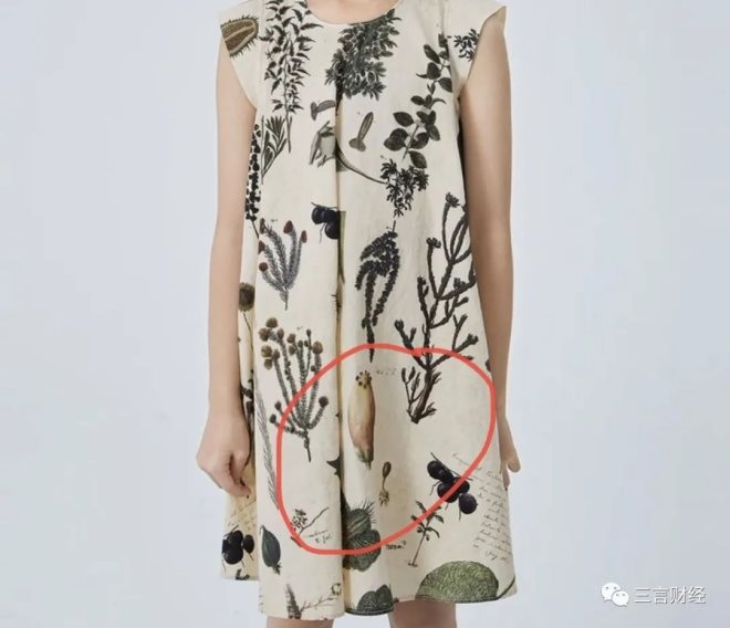 除了上述詭異和令人不舒服的圖案外,三言財經(jīng)發(fā)現(xiàn)在植物圖案中,江南布衣可能犯了更大的錯誤。