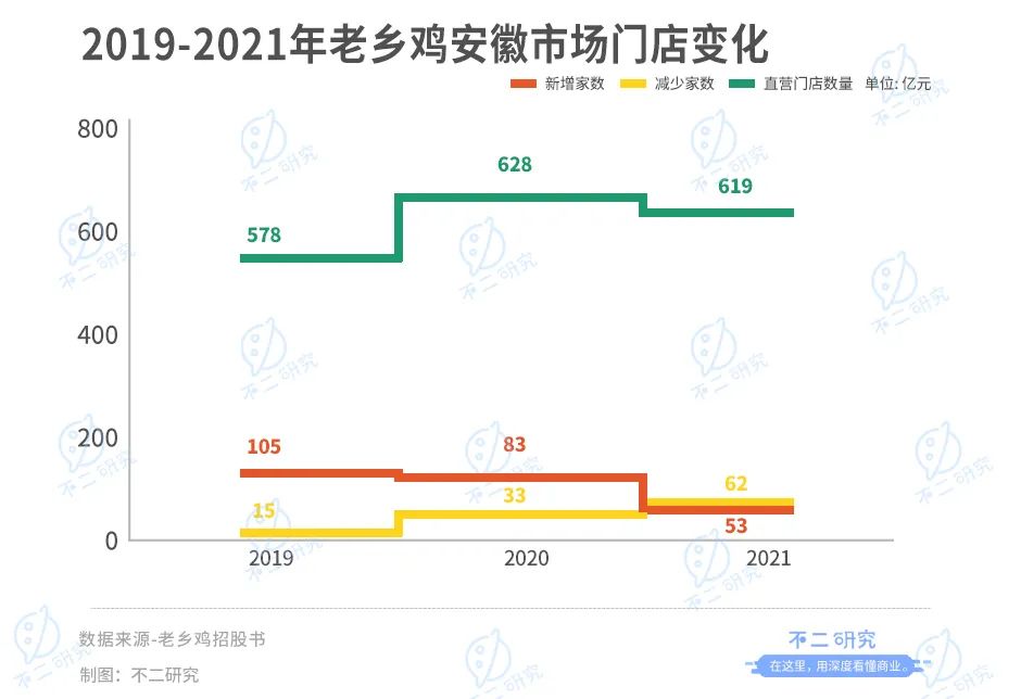 但在大本營安徽,老鄉(xiāng)雞的門店數(shù)量已經(jīng)開始收縮。招股書顯示,2021年安徽市場(chǎng)直營門店凈增數(shù)已經(jīng)由正轉(zhuǎn)負(fù),凈關(guān)9家門店。