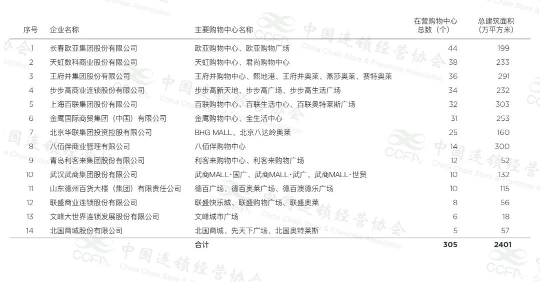2021年中國購物中心企業(yè)TOP70揭曉