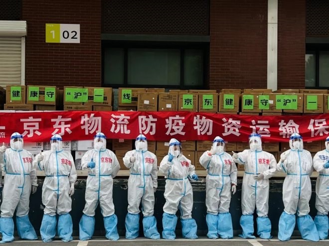 從4月14日開始,京東每天開始從全國各地調(diào)配緊缺藥品、民生物資通過包機航班、全貨機運抵上海。除了空運之外,從廣州發(fā)出的海運專線,還從廣州、武漢、成都等地發(fā)運的鐵路集裝箱,都滿載著米面糧油等生活物資運往上海。截至5月底,京東物流累計為上海運送包括米面糧油、藥品、母嬰用品等在內(nèi)物資超過15萬噸。