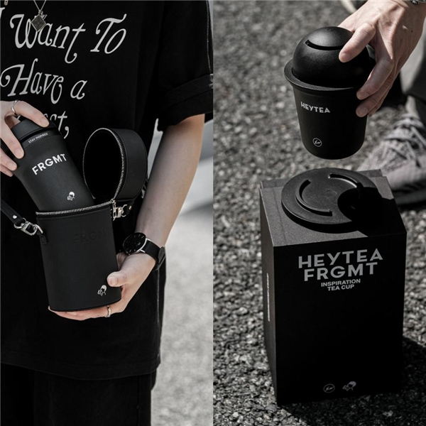 而雙方聯(lián)名的周邊,茶渣靈感隨行杯套裝和茶渣靈感多功能藝術(shù)杯套裝也在上線后迅速售罄。這兩款周邊運(yùn)用了國內(nèi)首創(chuàng)的可降解茶渣材料,經(jīng)喜茶與藤原浩帶著各自的理念和創(chuàng)意互相碰撞設(shè)計(jì)、制作而成,不僅表現(xiàn)出喜茶品牌中傳統(tǒng)茶文化的積淀,也具有強(qiáng)烈的街頭文化色彩和精致的質(zhì)感。