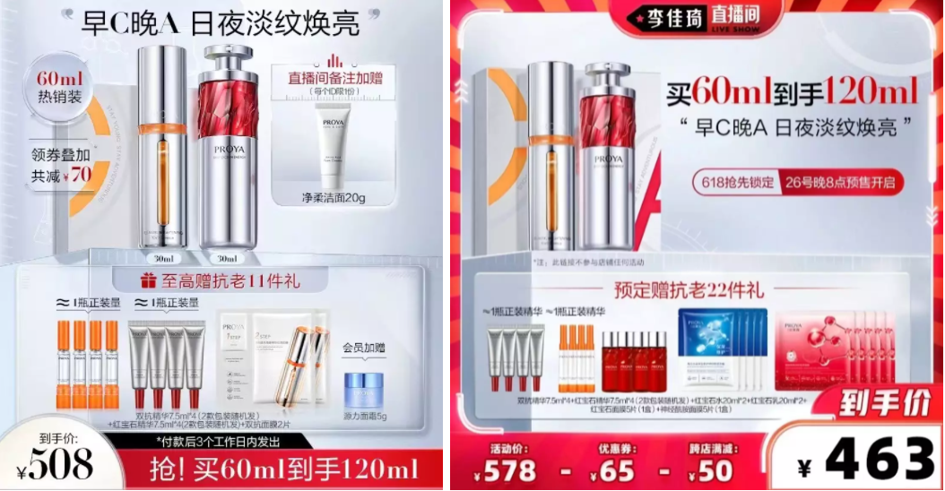 珀萊雅店播與李佳琦直播間優(yōu)惠對(duì)比