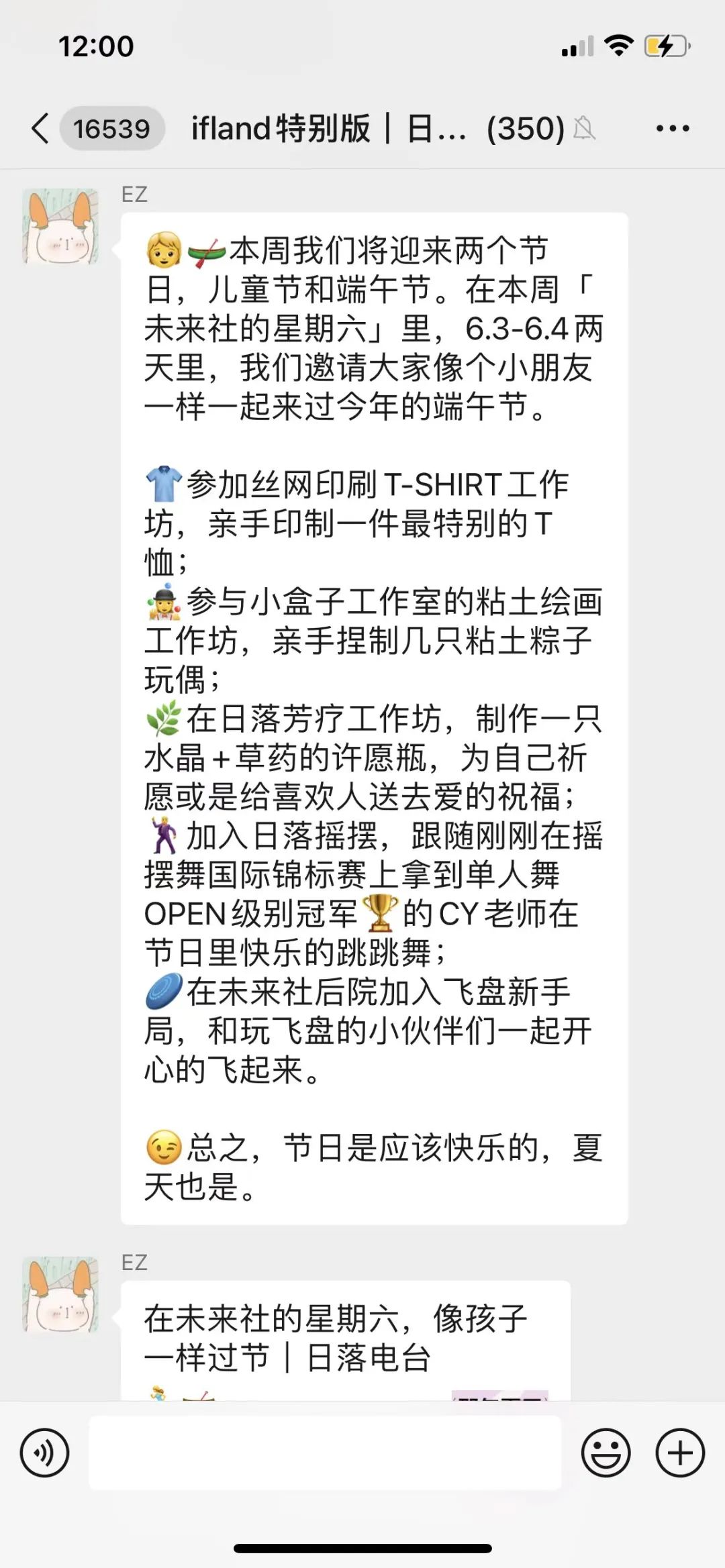 群里活躍度非常高,總都能看到群眾分享的下班路上日落時(shí)分的浪漫照片、平日項(xiàng)目線上線下的活動(dòng),或是城市生活的其他美好瞬間,就像一個(gè)理想的人文會(huì)客廳。