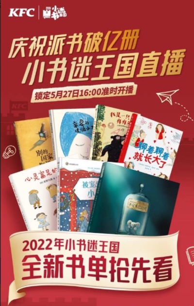 5月27日,為慶?系禄酝鯂(guó)隨餐派書累計(jì)突破一億冊(cè),肯德基發(fā)起線上慶;顒(dòng),活動(dòng)設(shè)置多重福利驚喜,更有奇奇強(qiáng)勢(shì)加盟,引爆直播間。值得一提的是2022年肯德基小書迷王國(guó)全新書單“守護(hù)童心,為愛閱讀”也在直播間通過(guò)趣味“猜猜猜”的活動(dòng)乘勢(shì)官宣發(fā)布,充分調(diào)動(dòng)觀眾積極性的同時(shí)也加深了大眾對(duì)于書單的印象?系禄酝鯂(guó)閱讀顧問(wèn)團(tuán)的專家老師也借助直播間,向小書迷王國(guó)的粉絲送出寄語(yǔ)祝福。