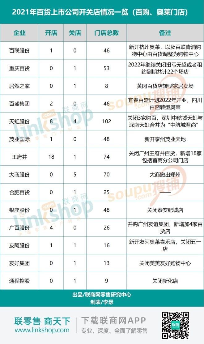 此外,根據(jù)重慶百貨此前公告,2022年重慶百貨將繼續(xù)關(guān)閉扭虧無(wú)望或者租約到期的22家門店。