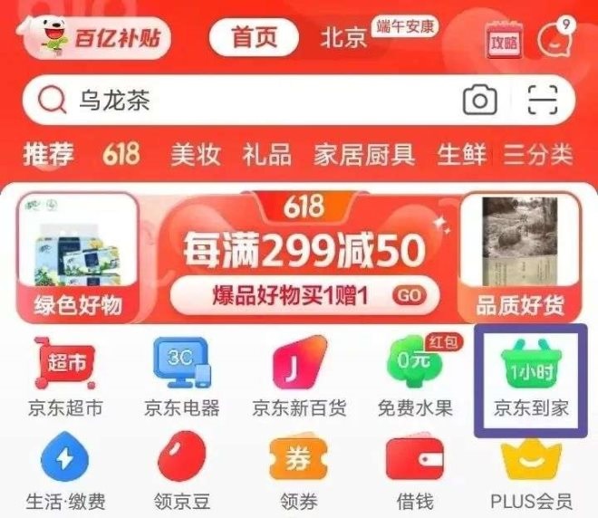 京東首頁(yè)的京東到家入口,圖源作者