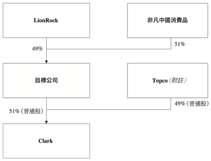 收購?fù)瓿珊,非凡中國將和萊恩資本共同持有一家公司,間接持有Clark集團(tuán)51%的普通股,成為僅次于Topco的第二大股東;Clarks將成為非凡中國間接非全資附屬公司,品牌業(yè)績也將綜合入賬至非凡中國財(cái)務(wù)報(bào)表。