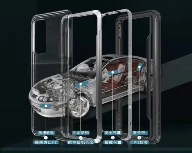 據(jù)了解,杰美特的研發(fā),集中在防摔和防水兩方面。例如其自主研發(fā)的Defense系列手機(jī)殼,運用了TPU軟膠、鋁合金、PC后蓋、TPE減震材質(zhì),并將上述材料進(jìn)行注塑結(jié)合,TPU軟膠邊框內(nèi)部還加工形成了類似泡泡的緩震“氣囊”,技術(shù)相當(dāng)硬核,受到商務(wù)人士的青睞。