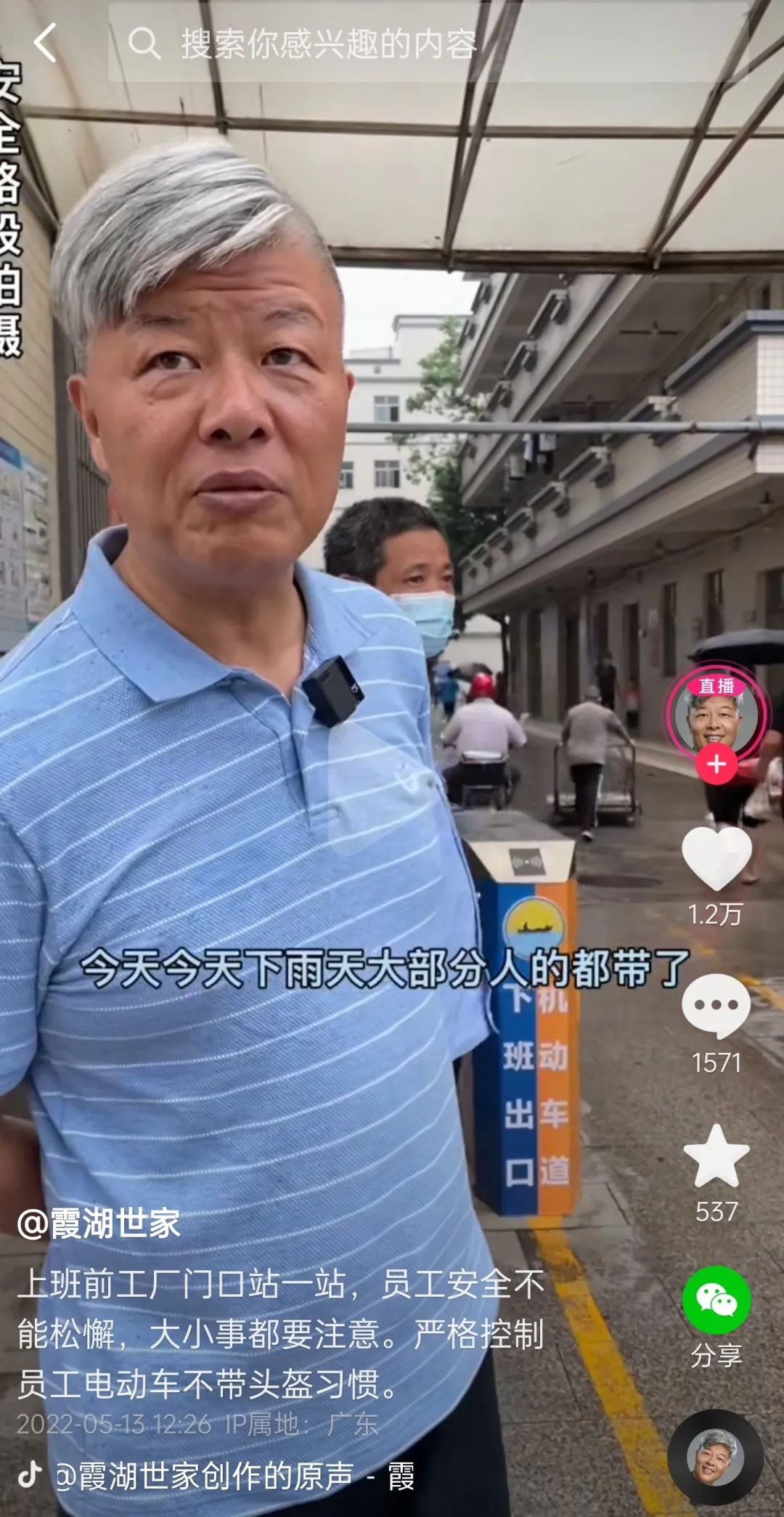注冊抖音號之后,郭長棋沒第一時間帶貨,而是通過VLOG式短視頻與直播記錄生活,和觀眾大談樸實無華的生活哲學。近期一則爆款視頻中,郭長棋冒雨站在工廠門口視察,叮囑保安“以后騎車不戴頭盔的人不讓進廠”,令粉絲看了直呼良心。