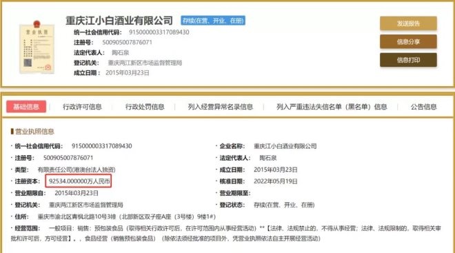 一筆近4億的巨額增資也說(shuō)明了資本對(duì)于江小白的肯定。天眼查5月23日顯示,重慶江小白酒業(yè)有限公司注冊(cè)資本增加,從5.75億元增加到9.25億元,增幅達(dá)60.83%。