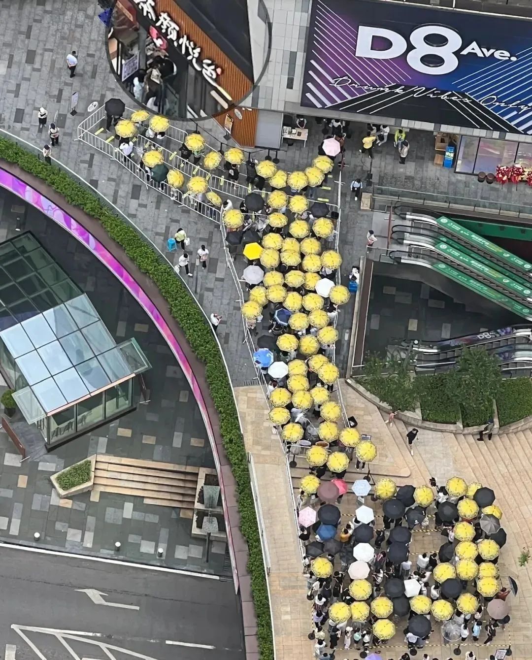 茶顏給每位排隊的顧客送上了茶水,還提前準(zhǔn)備好了雨傘,以備突然下雨也不會淋雨排隊,有網(wǎng)友直呼“太貼心了!”