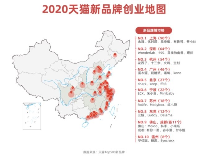 更值得注意的是,2021年的“6·18大促”成績(jī)單中,140萬(wàn)個(gè)新品首次面世,459個(gè)新品牌拿下細(xì)分行業(yè)第一。這459個(gè)拿下細(xì)分行業(yè)銷(xiāo)量冠軍的新品牌當(dāng)中,有60個(gè)來(lái)自上海,占比約為13%,遠(yuǎn)高于其他城市,上海成為名副其實(shí)的“新品牌第一城”。