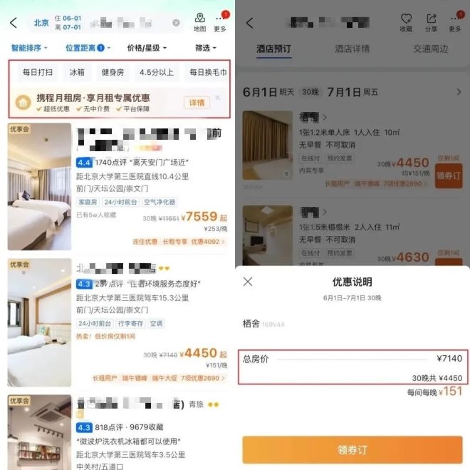 圖/攜程月租房享受的折扣價(jià)和服務(wù)