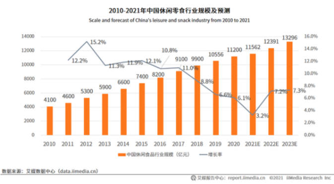 按零售額計(jì)算,2020年我國(guó)休閑食品行業(yè)規(guī)模達(dá) 7749億元,預(yù)計(jì)2025年將達(dá)到11014億元。其中,種子及堅(jiān)果炒貨2020年零售市場(chǎng)規(guī)模約1415 億元,約占 18%,是占比第二高的品類,預(yù)計(jì)2025年零售總規(guī)模將達(dá)到2173億元。而瓜子行業(yè)的規(guī)模只有300億元左右(2018年)。