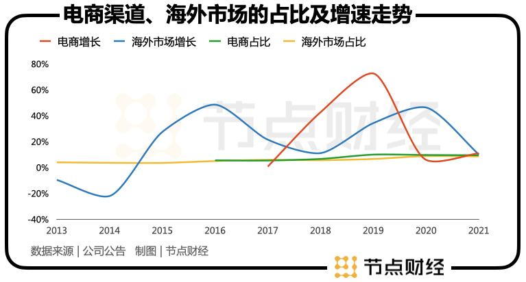 如果說(shuō)上一個(gè)時(shí)代的洽洽食品,享受了時(shí)代發(fā)展的紅利,那在沖擊百億目標(biāo)的路上,同樣離不開時(shí)代的幫助。具體來(lái)說(shuō),電商和海外市場(chǎng)的紅利,是洽洽食品接下來(lái)的突破口,也是沖擊百億目標(biāo)的兩大援兵。這其中,電商應(yīng)是重中之重。