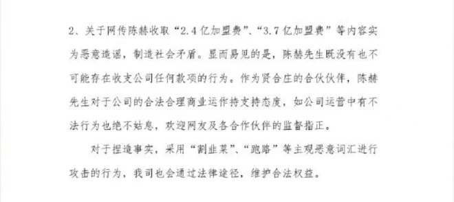賢合莊回應(yīng)陳赫收取過億加盟費:系惡意造謠