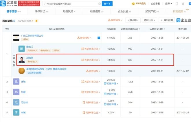 企查查信息顯示,該公司成立于2015年,注冊資本500萬元人民幣,胡海泉通過廣州江泉投資有限公司持有該公司股份。本宮的茶官網(wǎng)顯示,胡海泉為該品牌聯(lián)合創(chuàng)始人。