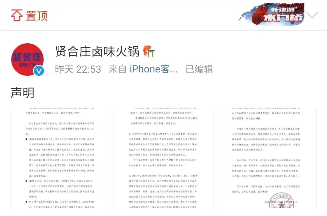 聲明中稱,疫情以來(lái),賢合莊多次支持經(jīng)營(yíng)困難的加盟門(mén)店,共派出131人的幫扶團(tuán)隊(duì),耗資逾千萬(wàn)。關(guān)于網(wǎng)傳“陳赫收取超億元加盟費(fèi)”為惡意造謠,“退股”則是出于經(jīng)營(yíng)發(fā)展需要。