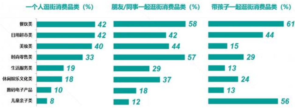 經(jīng)過調(diào)研發(fā)現(xiàn):81%是去餐飲,75%是親子,42%是會友,35%是看電影,33%是健身,20%是我也不知道干什么,去打個卡,19%是購物,9%是看展、聽講座。