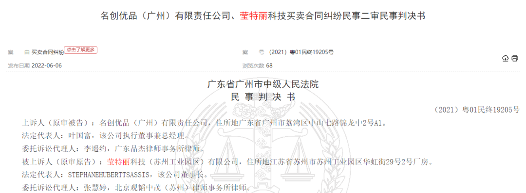 近期,瑩特麗起訴名創(chuàng)優(yōu)品的兩起案件都有了結(jié)果,名創(chuàng)優(yōu)品分別被判支付瑩特麗173萬(wàn)元定作款及損失,被判向瑩特麗支付貨款68.34萬(wàn)元,合計(jì)241萬(wàn)元。
