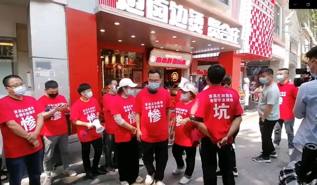 不久前,賢合莊的多位加盟商,集體趕赴品牌總部所在地成都維權(quán)。加盟商們統(tǒng)一著裝,紅色T恤上印著白字“賢某莊加盟商 全國守法維權(quán)”,正中是一個大大的“慘”或“坑”字,維權(quán)現(xiàn)場還不止一次爆發(fā)肢體沖突,場面一度快要失控;