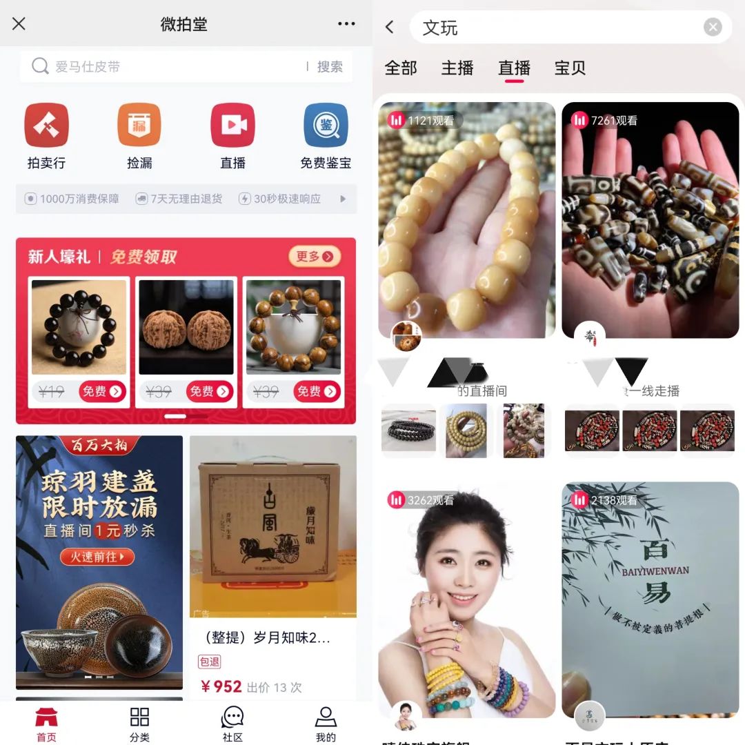 文玩電商微拍堂與淘寶直播的文玩商家