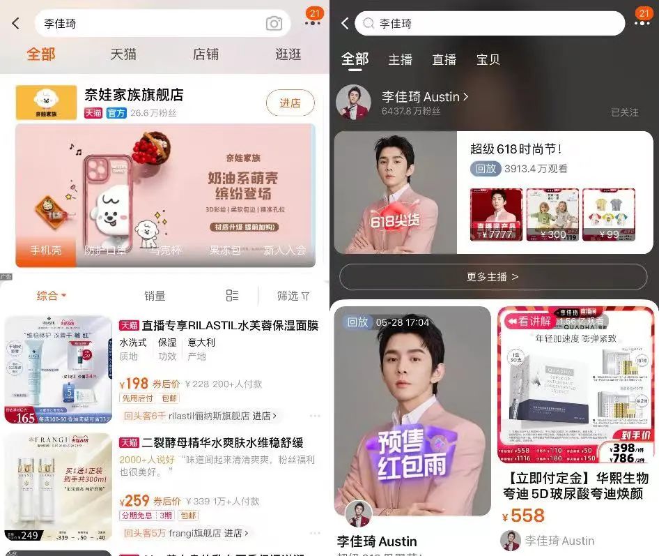 再看淘寶。由于去年的逃稅事件,淘寶直播一姐薇婭已經(jīng)銷聲匿跡。而一哥李佳琦,雖然依然正常開播,但出現(xiàn)的頻率和時長都在減少。6月3日,李佳琦直播到一半突然停播。隨后一直到現(xiàn)在都沒再出現(xiàn)過。要知道往年618期間,李佳琦幾乎每天都不會缺席。