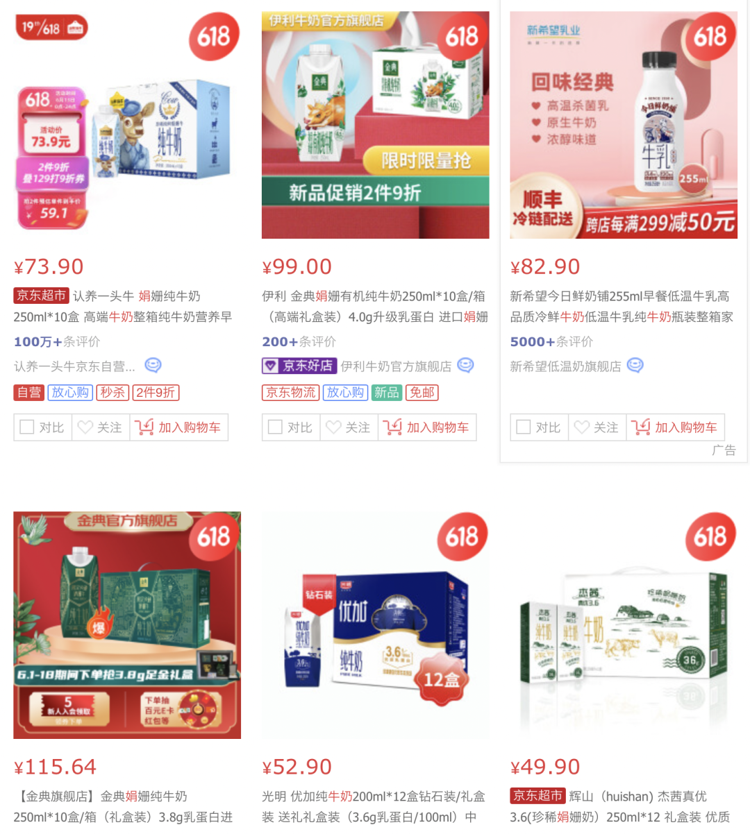 與產(chǎn)品一同“升級(jí)”的還有價(jià)格:伊利金典娟姍有機(jī)純牛奶的天貓官方售價(jià)為9.9元/250毫升,認(rèn)養(yǎng)一頭牛冷藏娟姍牛乳的天貓官方售價(jià)約為13.7元/250毫升。與之對(duì)照,伊利經(jīng)典款純牛奶的售價(jià)僅為3.2元/250毫升。